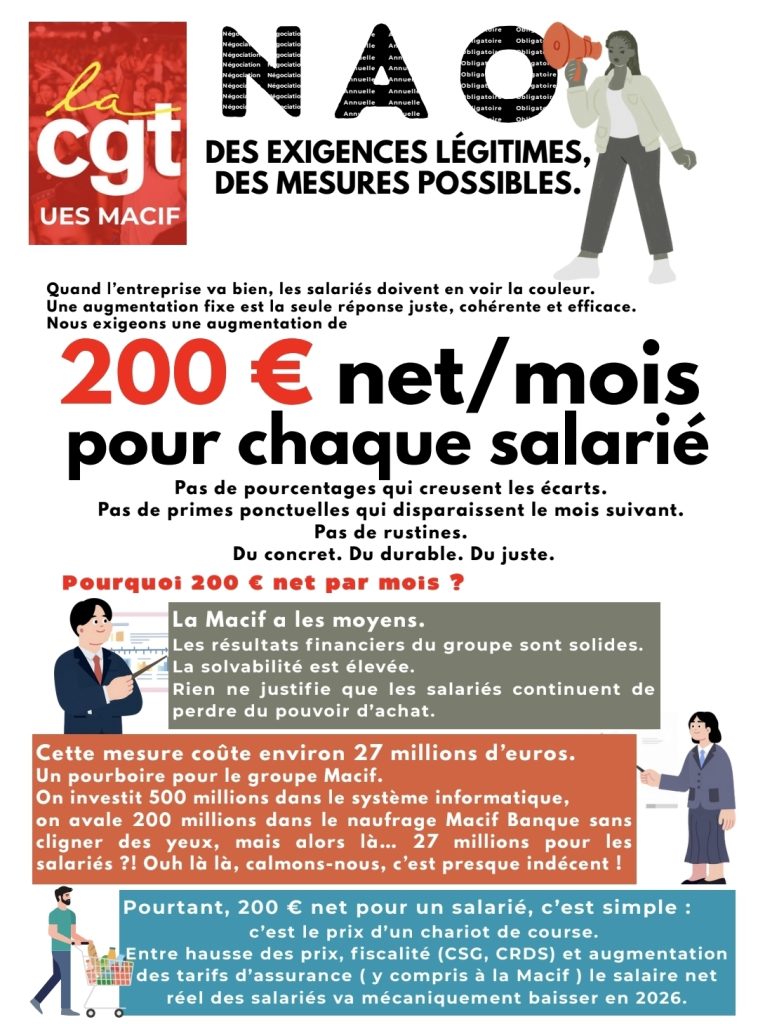 Parce que la MACIF en a les moyens et parce qu’il est temps de remettre de l’humain dans l’entreprise et des conditions de travail dignes d’une grande entreprise de l’économie sociale.